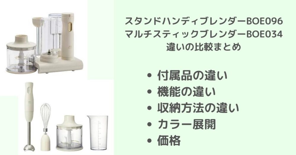 スタンドハンディブレンダーBOE096とマルチスティックブレンダーBOE034の違いを5つお伝えしました。