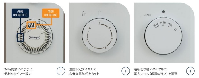 タイマー・温度設定・運転の強さもすべてダイヤルを回すだけ。
