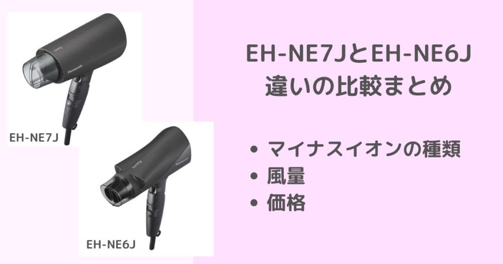 EH-NE7JとEH-NE6Jはどちらも大風量ですが、大きな違いは「マイナスイオンの種類」と「価格」の2点です。