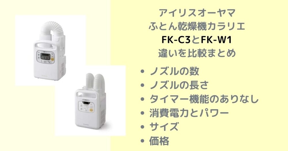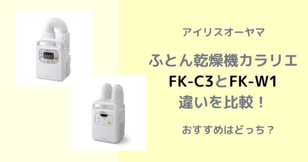 アイリスオーヤマのふとん乾燥機カラリエFK-C3とFK-W1の違いを比較して解説します。