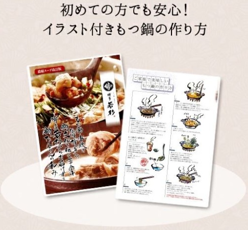 博多若杉のもつ鍋は、イラスト付きの作り方が同封されているので、初めての方でも安心です♪