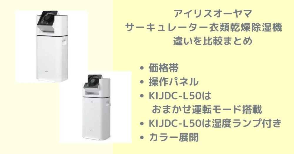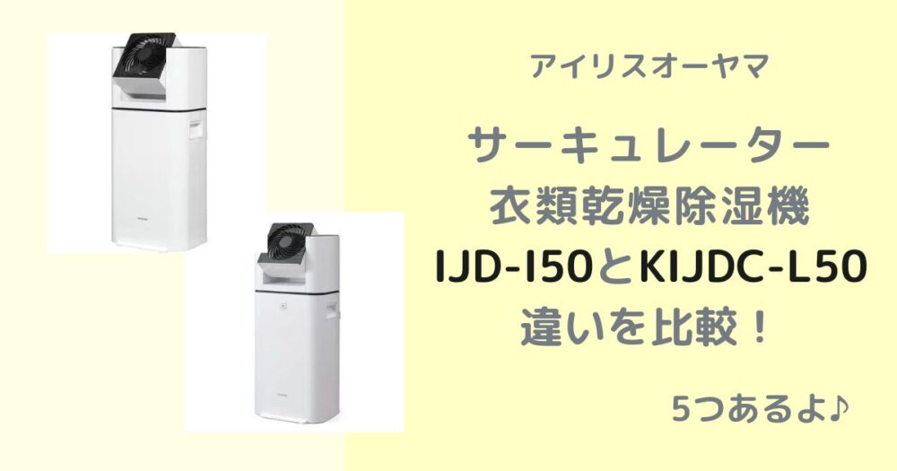 アイリスオーヤマのサーキュレーター衣類乾燥除湿機IJD-I50とKIJDC-L50の違いをの違いを比較して解説します。