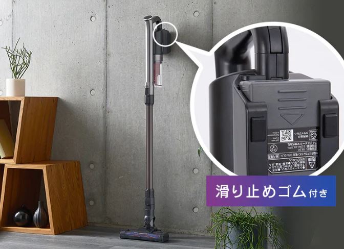 SCD-141Pは滑り止めゴムがついているので、充電時や不使用時には壁に立てかけておくことができます。