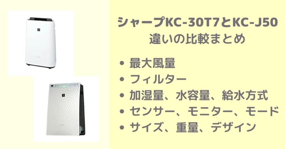 シャープKC-30T7とKC-J50 違いの比較まとめ