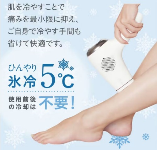 ミュゼの家庭用光美容器は、痛みを抑える5℃の即冷却機能付きです。