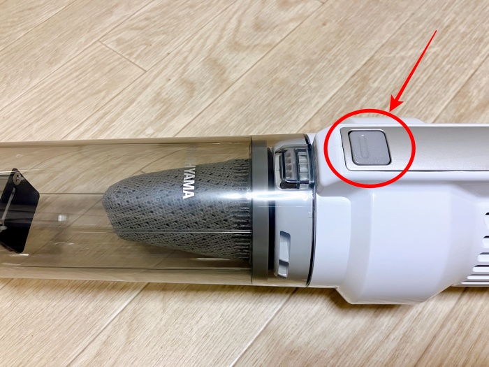 本体のこの部分を押すと、ダストカップがパカッと外れます。