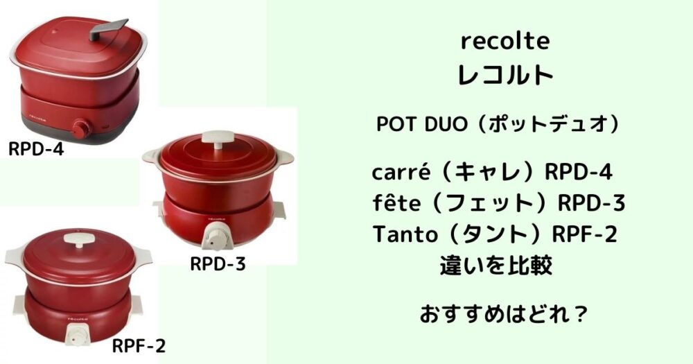 レコルトのポットデュオ キャレRPD-4・フェットRPD-3・タントRPF-2の違いは以下の6つです。